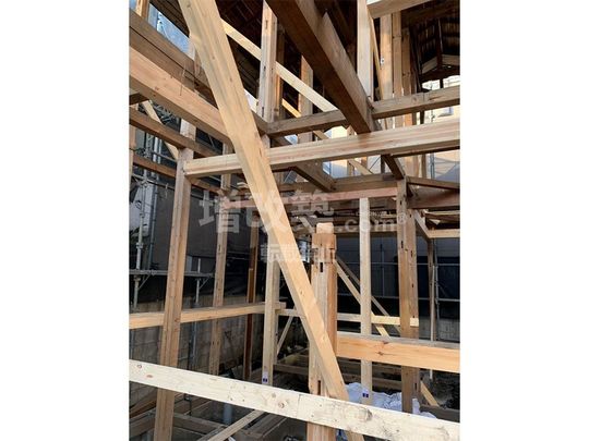 ▲仮の筋交いで補強を入れながら、木工事をスタートしてきます。