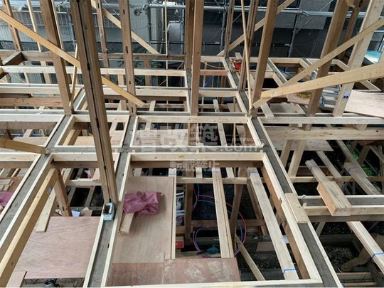 基礎補強工事が終わり大工工事へと移行します。構造躯体の強度を担保するためのメイン工事となります。この段階より間取り変更を想定した解体が始まります。いわゆる躯体の差し替えです。江東区K様邸の二世帯住宅リフォーム(完全分離型)では大幅な間取り変更が必要となり、既存の端を抜き梁を架けたり補強個所が多く、大工工事の段階でこれらの解体を進めていきます。