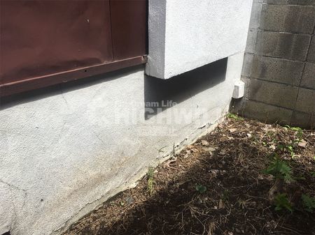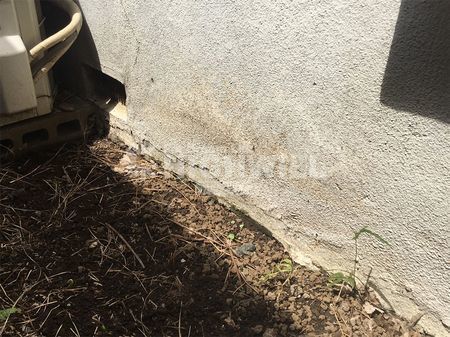 ▲土とモルタル塗装部分の間が縁が切れておらず、これでは白蟻が入りやすい環境となっています。