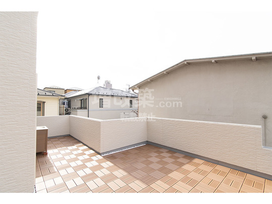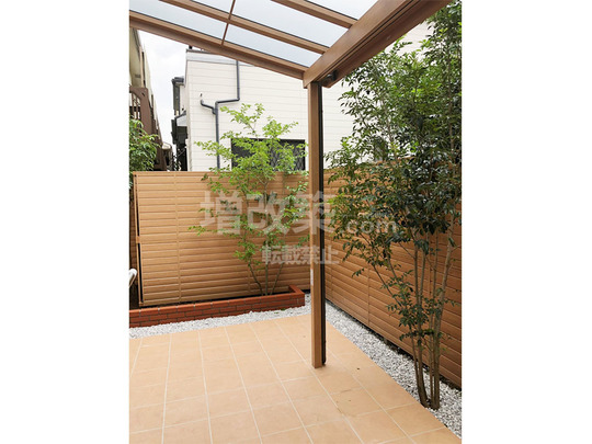 ▲たっぷりの屋根と高めの目隠しでご近隣との視線を遮れます。