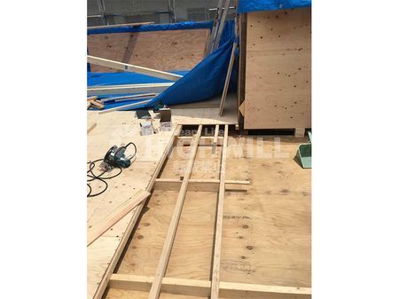 ▲I様の戸建てフルリノベーションでは木造屋上ルーフバルコニーが広く、水勾配をしっかりとらなければなりません。その為、大工工事の防水下地が重要になります。