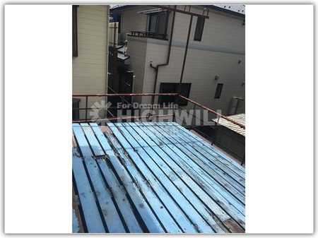 ▲下地が腐食して歩けませんでしたが、リノベーション後は下屋解体後にルーフバルコニーテラスとなります。