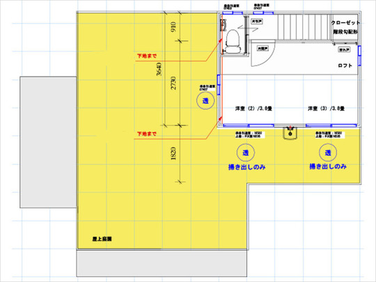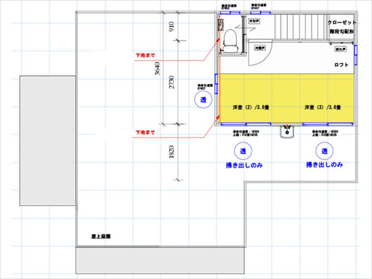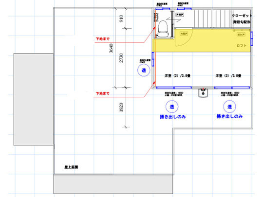 I様からは二階のルーフバルコニーテラスのスペースを増築して居室にしたいご要望が当初ございました。