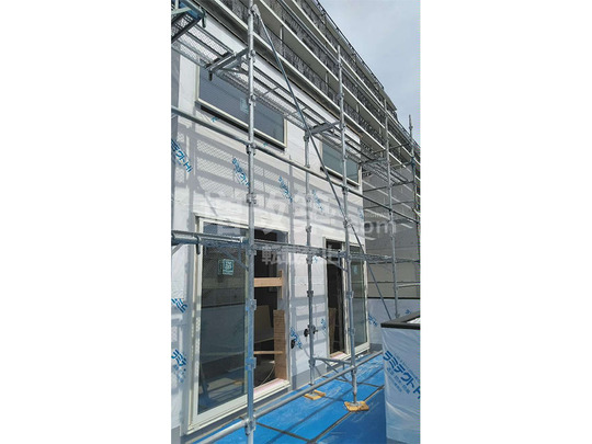 ▲仕上げ前に構造用合板貼りの次の工程である防水透湿シート貼りを行います