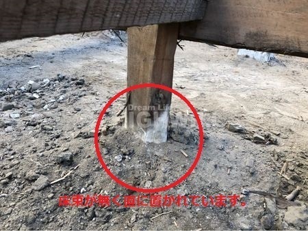 ▲過去幾度となくフルスケルトンリフォームの現場で目の当たりにしてきましたが、I様邸でも束に束石が設置されていない箇所が、構造上重要なところで散見しました。