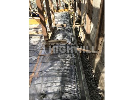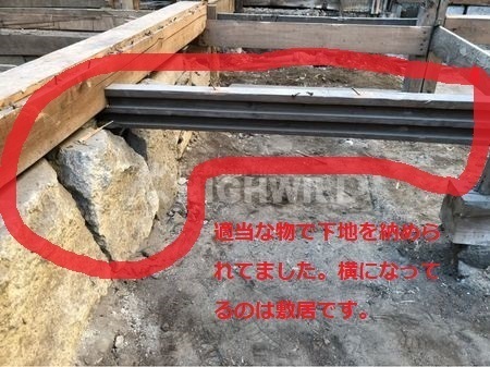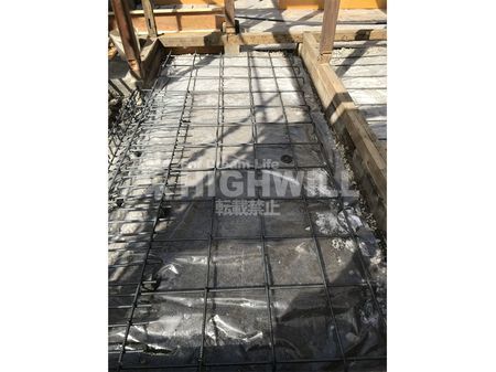 ▲砕石→転圧後に、防湿シート張りをして、配筋工事となります。ベタ基礎の為、コンクリートは耐圧盤と立上がり基礎の2度打ちとなります。
