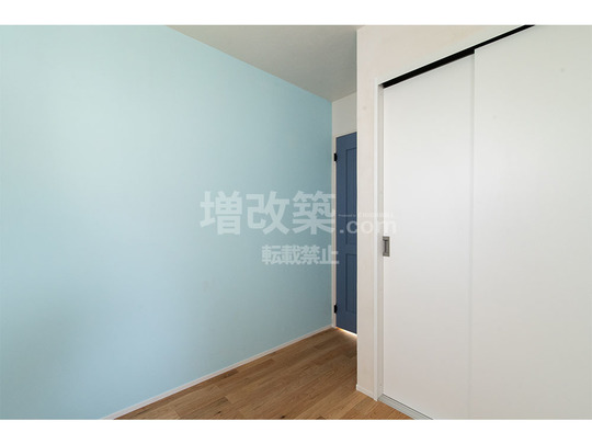 ▲左側の青い壁は、I様とお嬢様で塗装で塗って仕上げて頂きました。