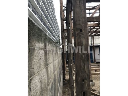 ▲マンション側はブロック塀と密着していた為、減築し新たに基礎を作り直しです。