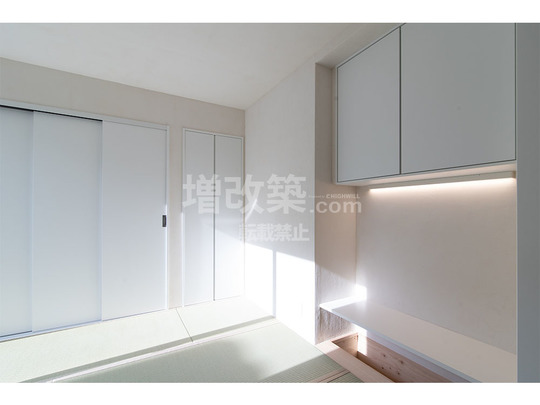 ▲収納扉は和室用ではなく、壁面に合わせ真っ白の扉に統一しています。