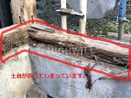 ▲土台の腐食などは想定していたもののK様邸で最も驚いたのが白蟻により梁までが食べられていたことでした。