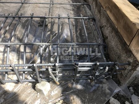 ▲鋤取り、転圧後にポリフィルム張りをした後は、配筋です。千鳥状に配筋をしていきます。D13を200mm間隔で配筋していきます。