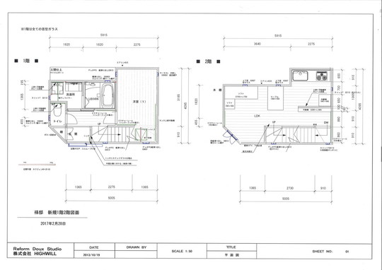 M様の祖父様所有の築古賃貸アパートをお孫様夫婦で改築し住みたいとお話がありました。狭小住宅となる建物のため、間取りの工夫が必要で、屋上を設置すること、2FにLDKを配置することが最優先のご要望でしたので、この点を検討しプランニングをさせていただきました。M様は新築されるか改築されるかで悩んでおられましたが、ご予算的に改築を選択されました。