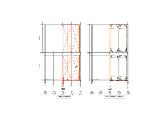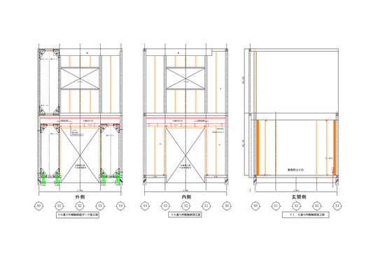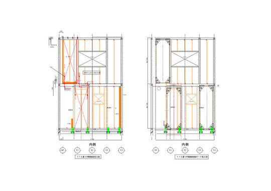 ▲施工時期が異なる2棟が連なる所謂「ウナギの寝床」型の構造を一体化させます。今回は耐震等級3へと耐震性能を大幅に向上させる工事の為、特許工法である「鎧ガード工法」を採用しました。