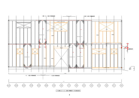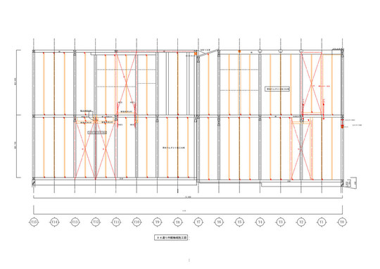 ▲耐力壁になる壁スペースには6.3倍の耐力壁制作の墨出しをしておきます。