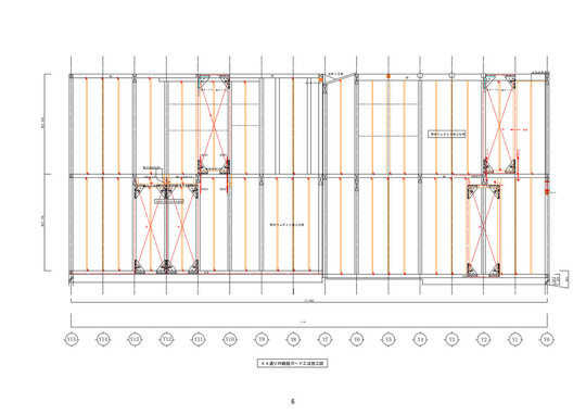 ▲ここにも6.3倍の耐力壁が設置される事、そして2階と1階を強床工法で補強した為、桁梁にはホールダウン金物で固定します。
