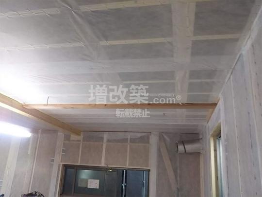 ▲二階の天井、壁の充填が完了