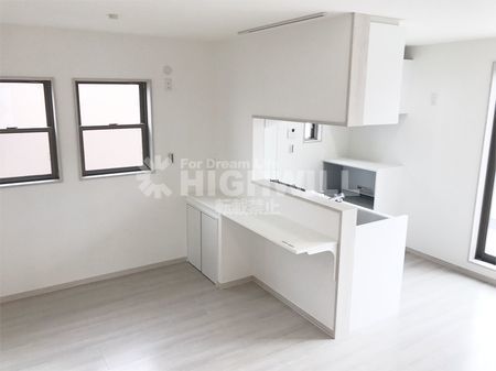 ▲ キッチンはI型を対面の様にし、カウンターを造作で設置させて頂きました。