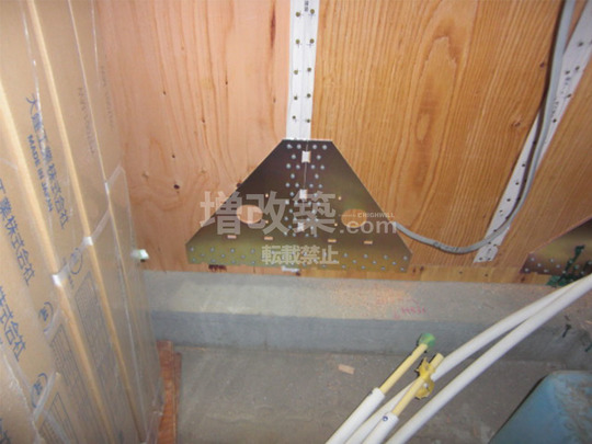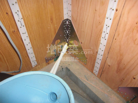 ▲通し柱部分へのガゼット補強工事も2階までの通しでの補強緊結となりました。