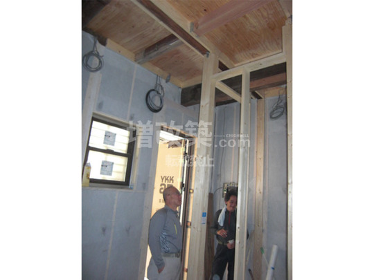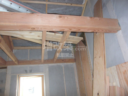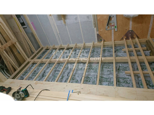 ▲断熱サッシ+セルロースファイバー充填後、現場での大工作業中にお施主様が来られましたが、「音がまったく聞こえなかった為、誰も居ないかと思いました」と言われました。