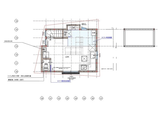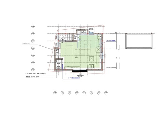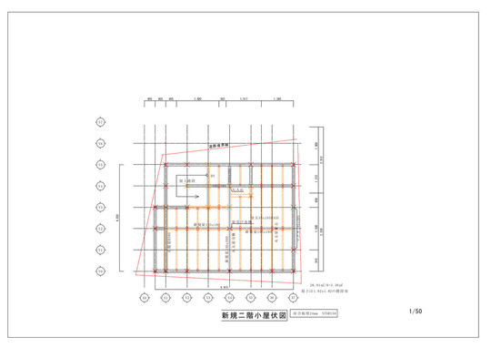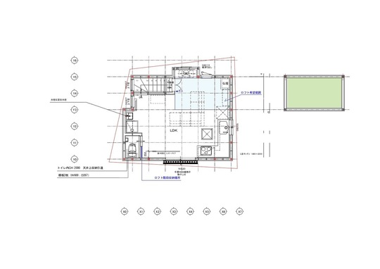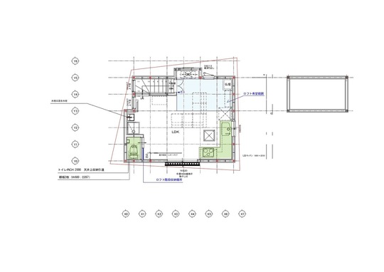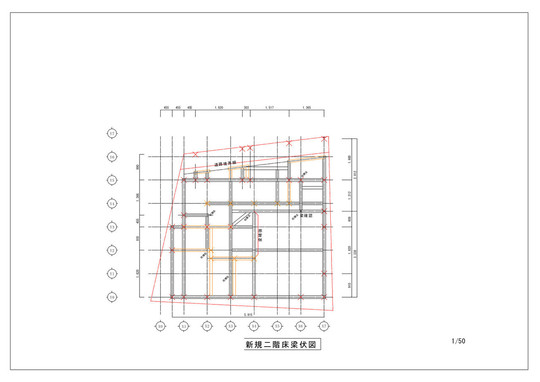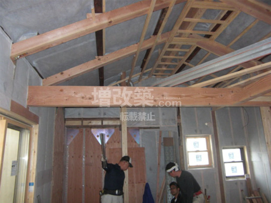 既存和室は洋間にリフォームされておりました。2階はロフトを制作し、間取りもリノベーション後に柱がないLDKとなるため、架ける梁の背などの計算が必要になります。
