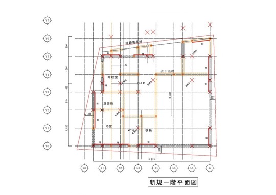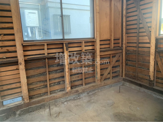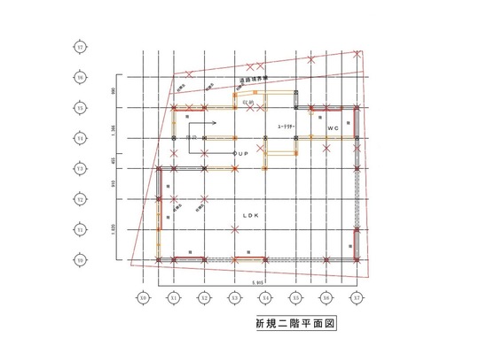 ●私道に越境して増築をしてしまったため、測量を入れてどこまで減築しなければならないのかを決定する必要があります。解体後に測量士による測量をして、リノベーションとなります。セットバックをしたくない、セットバックをしてしまうと希望する間取りにならないのでリフォームを選択するというお施主様は多いのですが、越境をしている場合は、建築基準法第2条第15号の「大規模の模様替」においても是正が必要です。