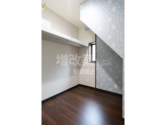 ▲ こちらはあえて扉を付けないオープン収納です。階段勾配下も極力空間にしました。