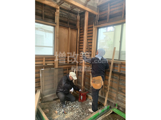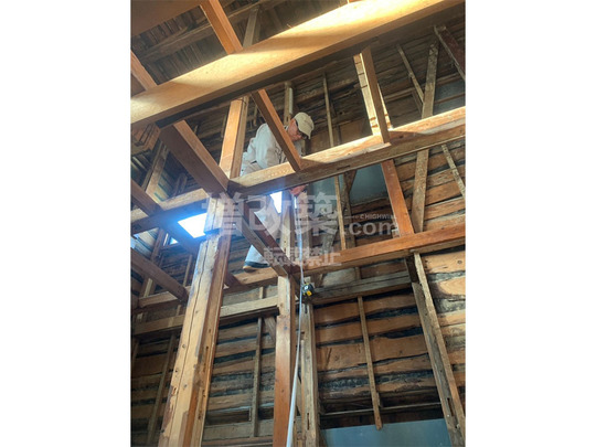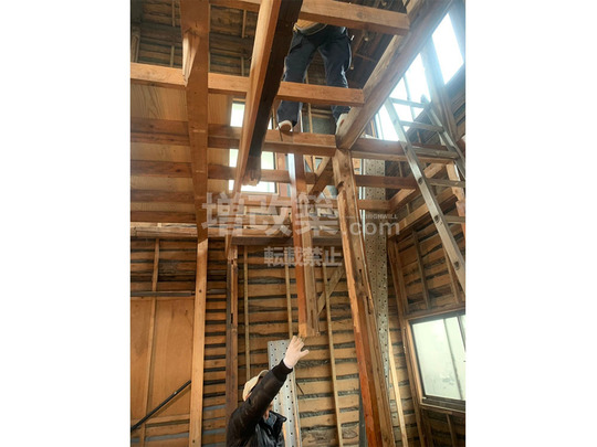 ▲既存の躯体の傷み具合をチェックし次工程のジャッキアップに備えていきます。
