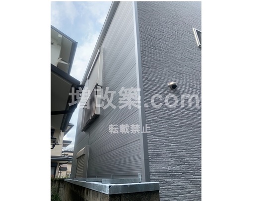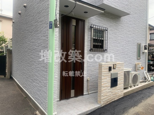 品川区M様邸は、玄関側面の2面を上張りによるサイディング仕上げ、玄関より向かい奥面と手前面は外壁解体後に、サイディングを新設です。