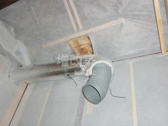 ▲2階は勾配天井となりますので屋根勾配に合わせてセルロースファイバー充填を行いました