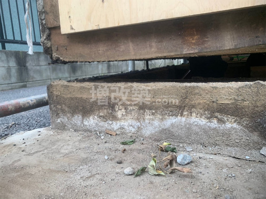 ▲主無の基礎周りは無筋基礎となっており添え基礎補強による基礎補強を提案させていただきました。