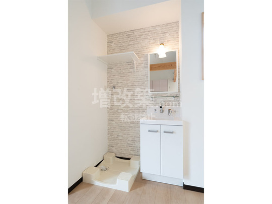 ▲2階LDK内に洗濯機パンと洗面化粧台を設置しました。