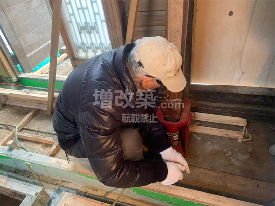 ▲サポートをかけながらジャッキを均等にいれていきます。