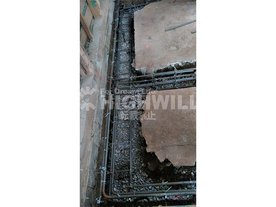 ▲添え基礎補強時に埋め込んだアラミド繊維を縦方向に使用し補強ガゼットと緊結します。