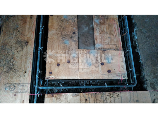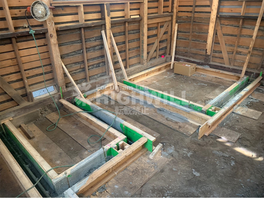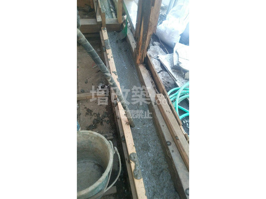 ▲ジャッキアップして隙間があいている部分についてもこの時に型枠を裏張りしてコンクリートを打設します。