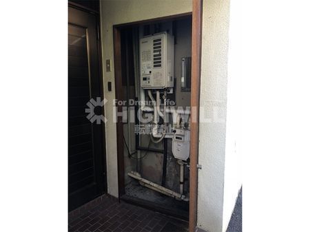 ▲玄関脇に設置されていた給湯器も増築部分となっており移設が必要になります。