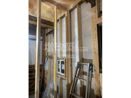 ▲断熱材と構造計算上必須とされた耐力壁設置後の状態です。