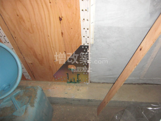 旧耐震基準の建物を新築での最高基準である「耐震等級3」グレードまで引き上げるためには、基礎補強は必須であるとお話ししました。しかしそれだけでは、M様のご希望する間取りでリノベーションをしてしまうと壁量計算をした際に耐力が不足し、耐震等級3での施工は難しい現実がありました。そこで基礎と土台と耐力壁を一体化することで壁倍率が6.3倍まで引き上げることができる特許工法を採用しました。