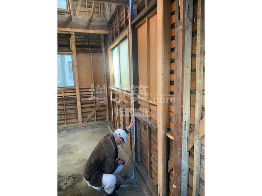 解体後にレベルを計測したところ、建物傾きが判明しました。お施主様にも現場にてご確認いただき、ジャッキアップによる傾き補正を提案させていただきました。