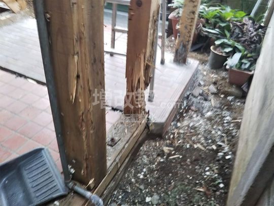 1階玄関部分は玄関ポーチと土台の高さを考慮されておらず雨水がそのまま土台と触れてしまう高さとなっており柱まで腐食が進んでいる状況でした。