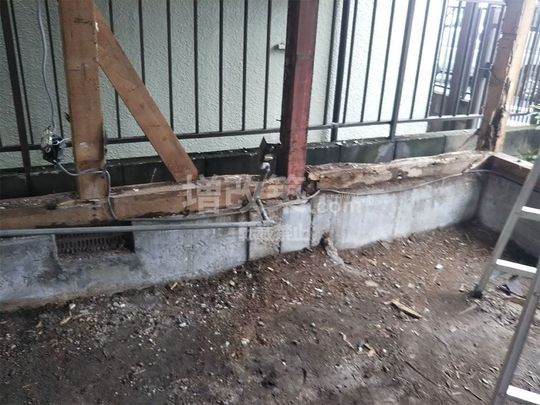 他社の提案では基礎は補修をすれば大丈夫との提案を頂いていたとのことですが、築60年の旧耐震基準の建物であり、基礎に鉄筋が入っていない「無筋基礎」になることから、弊社では抱き合わせ基礎(添え基礎)補強での補強を提案させていただきました。