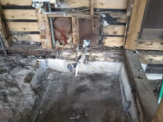 1階浴室部分は土台が朽ち果てており柱まで腐食が進行していました。