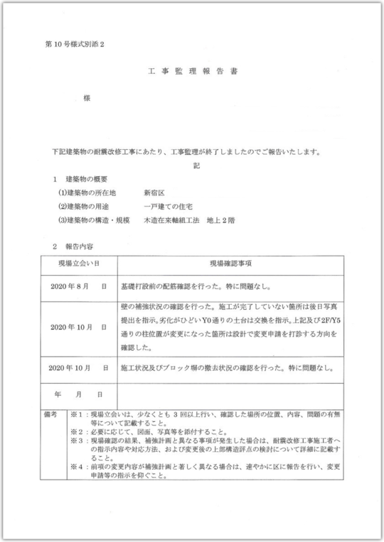 建物の内見をさせていただき耐震構造を含めた内外スケルトンを1300万程度で収めたいとのご希望でした。予算をオーバーしてしまう事もあり新宿区の耐震改修補助金を提案させていただきました。補助金の利用のケースでは、スケルトンリフォームでは役所とのやり取りも、通常の単純な耐震補強工事と比較し、複雑化しますので工期が長引くケースがあります。S様は既に家をお持ちでいたので、工期に余裕が取れることから補助金採用の方向でお話が進みました。
