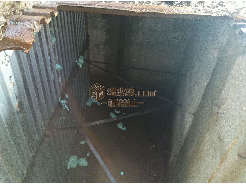 内装を剥がし、外壁を取り払い、家が骨組みだけになった時、1階の床下から巨大な空洞が出現しました。深さ約2メートルのコンクリート製の地下室です。登記簿にも一切の記載がなく、前の住人も把握していなかった「未知の空間」でした。 この発見は、通常の工務店なら「工事不可能」として放り出すレベルの事態です。地下室があるということは、その上の地盤には「地耐力(建物を支える力)」が期待できないことを意味するからです。