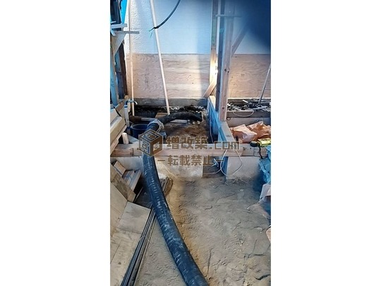 内装を剥がし、外壁を取り払い、家が骨組みだけになった時、1階の床下から巨大な空洞が出現しました。深さ約2メートルのコンクリート製の地下室です。登記簿にも一切の記載がなく、前の住人も把握していなかった「未知の空間」でした。 この発見は、通常の工務店なら「工事不可能」として放り出すレベルの事態です。地下室があるということは、その上の地盤には「地耐力(建物を支える力)」が期待できないことを意味するからです。