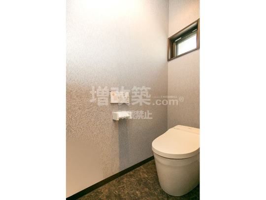 既存のトイレは浴室の入口の反対側。フルリフォームによるトイレ位置の変更はありませんが廻りを変化させることで落ち着ける空間になります。