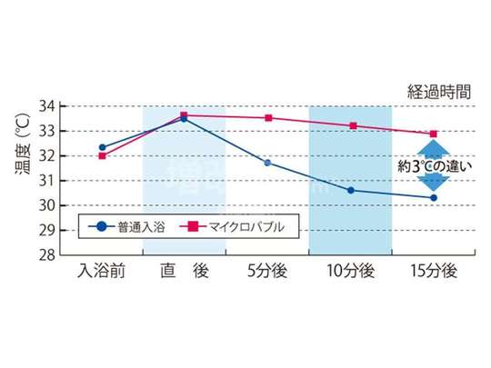 身体中の毛穴に入り込んだ気泡が弾ける時に程よい刺激を与えてくれるので、身体の芯から温まります。お風呂上りに湯冷めしにくく、毎日温泉に入ったような気分が味わえます。
