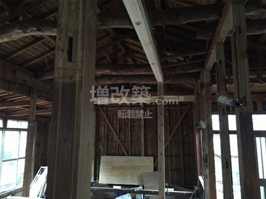 ▲近年リフォーム現場でしか見られない丸太梁