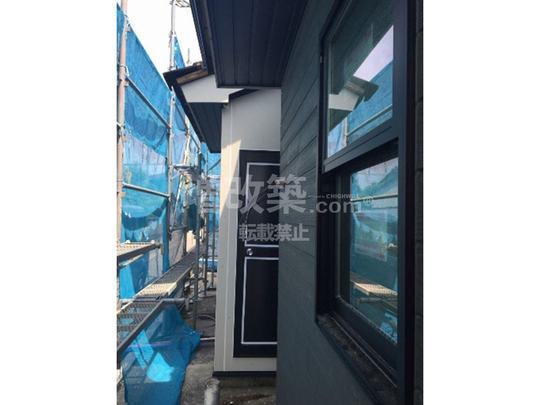 今回A様邸ではコーキング目地が極力少なくできるよう縦張りをご提案させていただきました。また、コーキングの上から塗装を吹き付ける事によりコーキングの劣化を遅らせる効果も見込めますので、建物の管理費用も抑えられます。