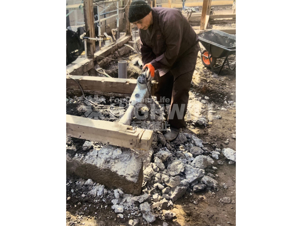 新規の浴室とのサイズも変わるため、既存の布基礎を解体します。