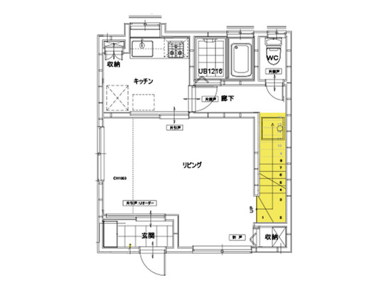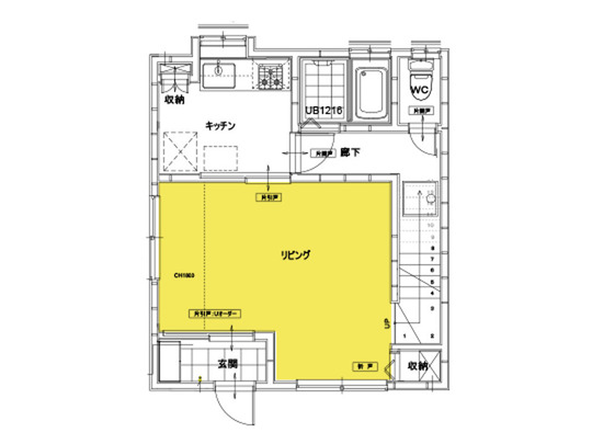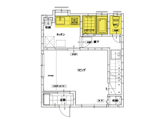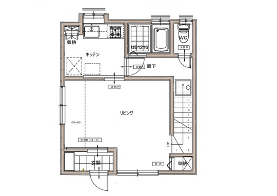 1階に、キッチン・浴室・トイレが設置されています。リフォーム後は2階にトイレを1つ追加します。